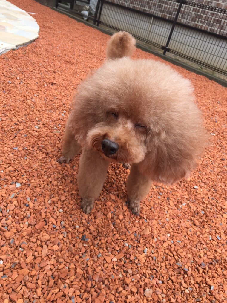 そこには品評会に出すという可愛いトイプードルが何頭かいたのですが一際目についたのが明らかに周りのわんこより大きいわんこ(ぷー)でした。笑